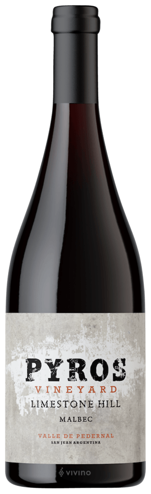 Le Pyros Limestone Hill Malbec est un vin rouge argentin issu de la vallée de Pedernal (San Juan), située à 1 400 mètres d’altitude. Ce 100 % Malbec se distingue par son terroir unique avec des sols calcaires datant de 480 millions d’années.